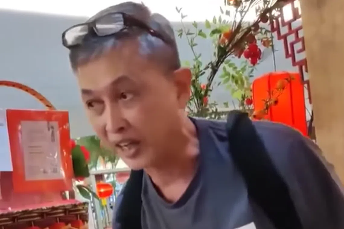 Pekerja kedai kedengaran sedang meminta ganti rugi tetapi lelaki yang dipercayai warga Singapura itu tidak mengendahkan permintaannya dan terus bergaduh lalu meninggalkan tempat kejadian.