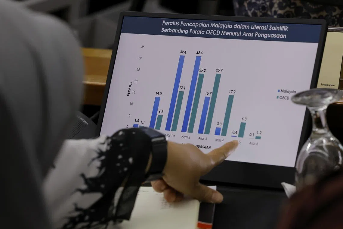 “Purata pencapaian Malaysia dalam Literasi Matematik mencatat skor 409 mata kali ini berbanding 440 pada 2018, Literasi Saintifik 416 berbanding 438 mata, dan Literasi Bacaan 388 berbanding 415 mata.