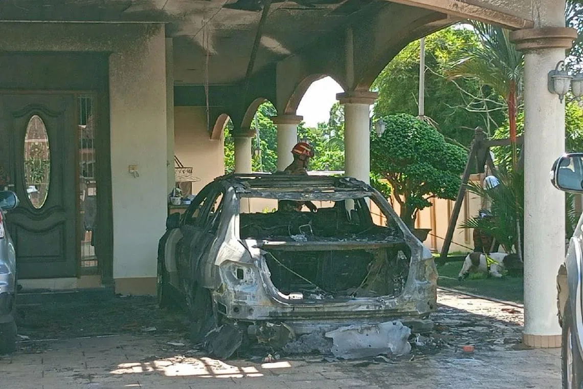 Dalam kejadian itu, kereta jenis Mercedes-Benz milik Datuk Ngeh musnah terbakar selain turut menjejaskan anjung rumah dan dua lagi kenderaan yang diletakkan di situ.