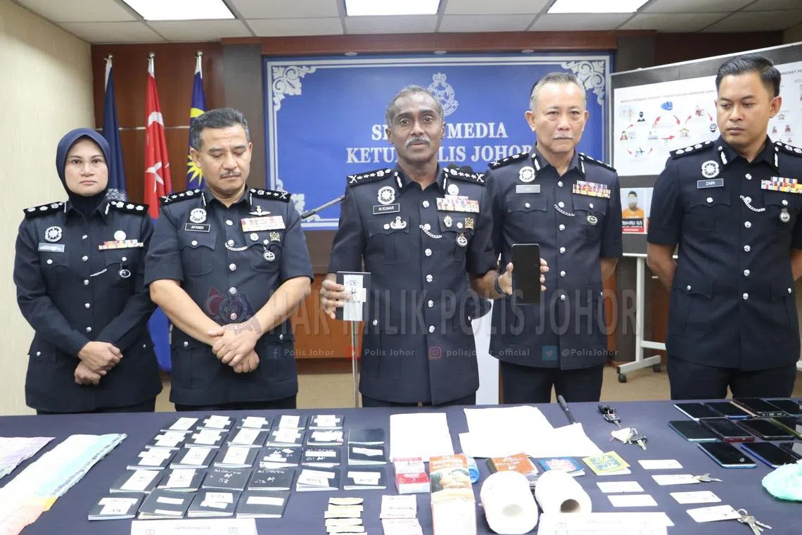 JOHOR BAHRU: Polis Johor menumpaskan satu sindiket pemerdagangan manusia untuk eksploitasi seks selepas lapan ahli ‘Geng Bala’, termasuk dalangnya, diberkas dalam lima serbuan di Johor Bahru dan Kulai, Johor, antara 21 April hingga 1 Mei.