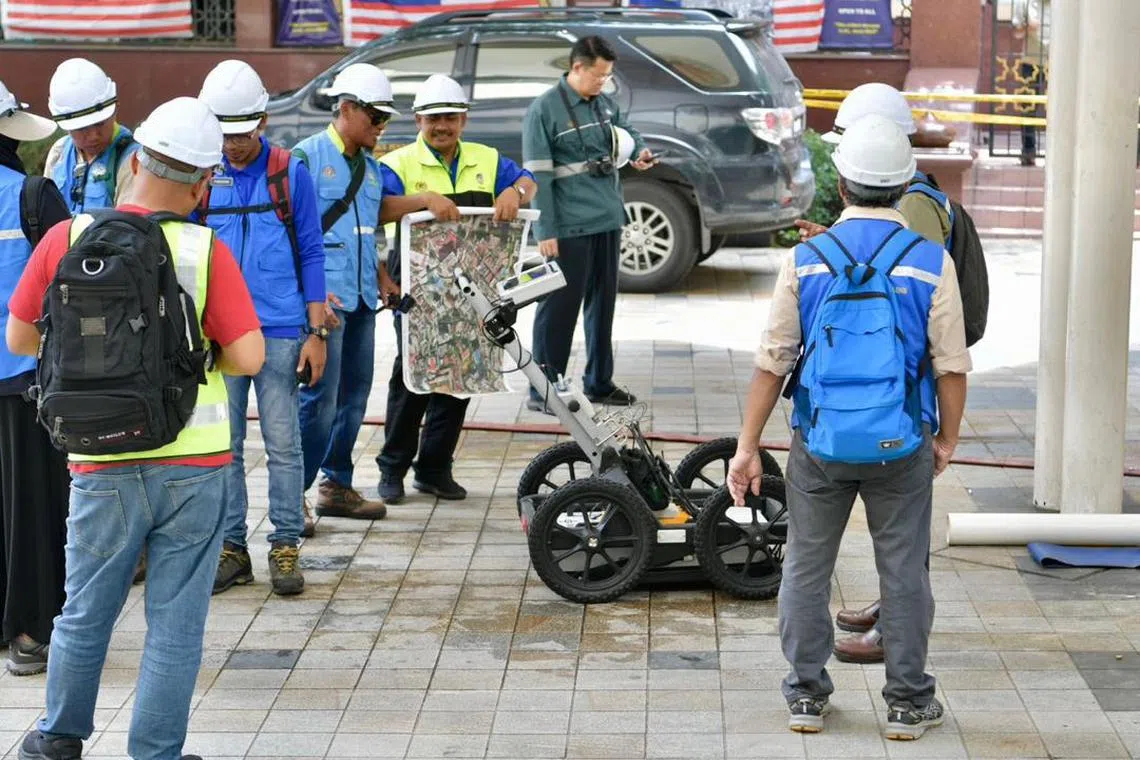 Alat pengesan radar menembusi tanah (GPR) dibawa ke lokasi tanah jerlus di Masjid India, Kuala Lumpur, untuk membantu operasi mencari dan menyelamat (SAR) wanita warga India yang hilang selepas terperlus ke dalam tanah benam itu pada 23 Ogos.