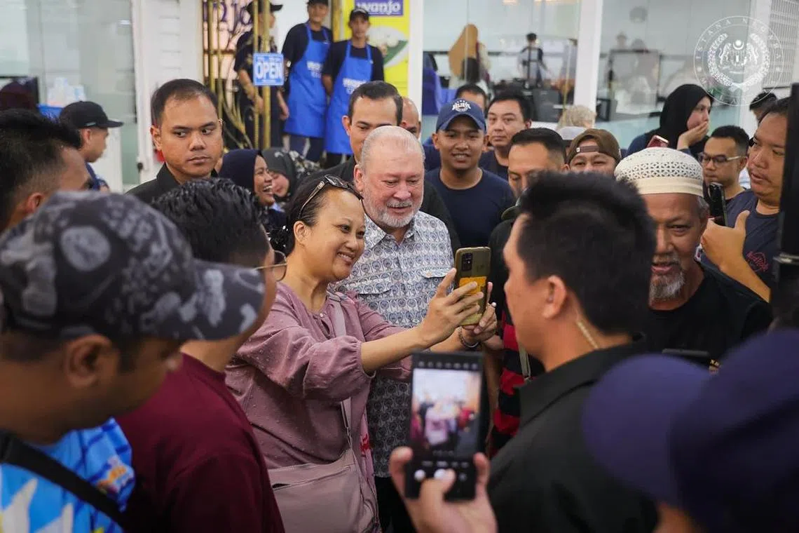 Sultan Ibrahim juga sudi meluangkan masa untuk beramah mesra serta bergambar dengan orang ramai yang berkunjung ke kedai makan popular berkenaan.