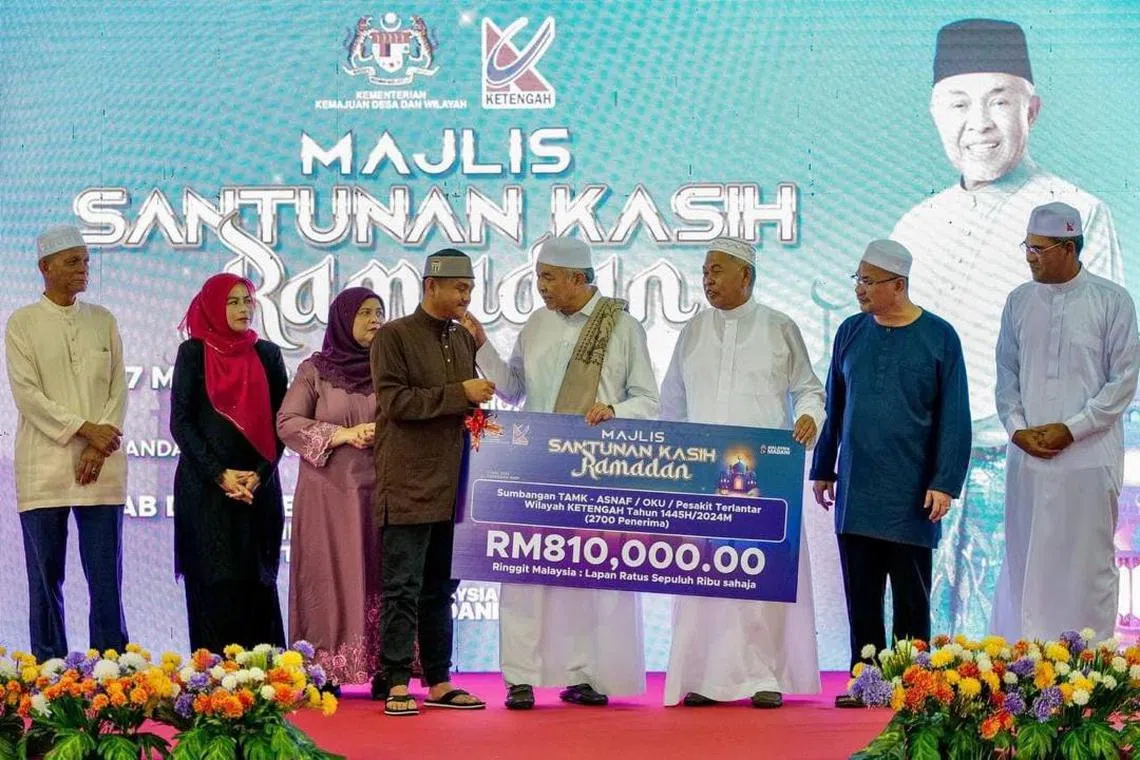 Beliau sebelum itu menyempurnakan Majlis Santunan Kasih Ramadan Kementerian Kemajuan Desa dan Wilayah (KKDW) di Masjid Sultan Mahmud di Bandar Al Muktafi Billah Shah, Dungun, Terengganu.