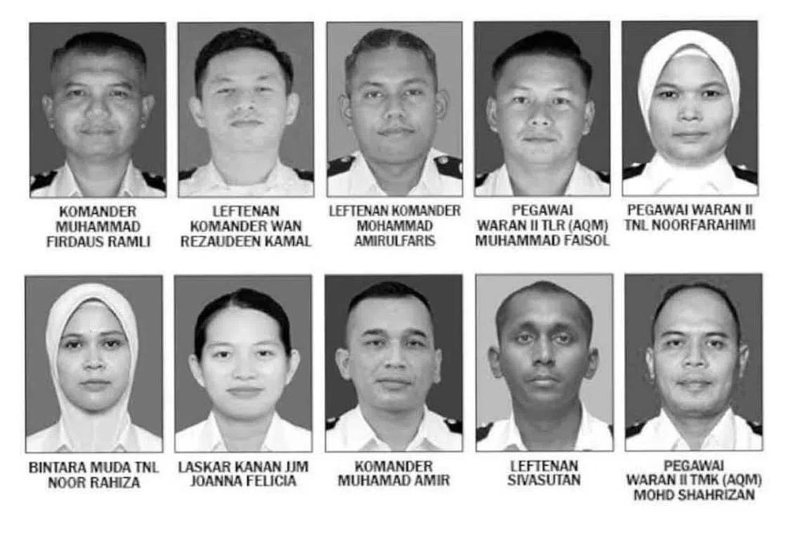 Selain Leftenan T Sivasutan dan Laskar Kanan JJM Joanna Felicia, mangsa lain adalah Allahyarham Leftenan Komander Wan Rezaudeen Kamal Wan Zainal Abidin yang akan dikebumikan di Kuala Lumpur; Allahyarham Lt Kdr Amirulfaris Mohamad Marzukhi (Negeri Sembilan); Allahyarham Kdr Muhammad Firdaus Ramli (Pulau Pinang); Allahyarham Kdr Muhamad Amir Mohamad (Johor); Allahyarham Pegawai Waran (PW) II TMK (AQM) Mohd Shahrizan Mohd Termizi (Perak); Allahyarham PW II TLR (AQM) Muhammad Faisol Tamadun (Kedah); Allahyarham PW TNL Norfarahimi Mohd Saedy (Perak); dan Allahyarham BM TNL Nor Rahiza Anuar (Kedah).