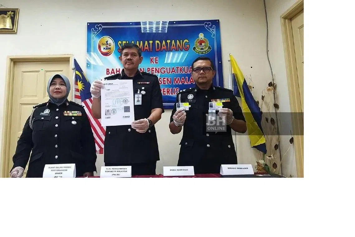 “Pemeriksaan selanjutnya menjumpai komputer riba dengan 200 dokumen berformat PDF berhubung permohonan surat dalam proses pertimbangan UNHCR, dipercayai palsu dipohon warga Myanmar dari etnik itu yang tinggal di beberapa negeri.