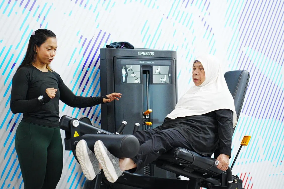 “Sekarang ibu boleh mengangkat berat daripada lima kilogram (kg) kepada 11kg sebanyak 11 ulangan dalam masa yang singkat untuk senaman chest press (senaman dada); dan sebanyak 20kg untuk senaman leg press (senaman kaki),” kata Cik Maryam.