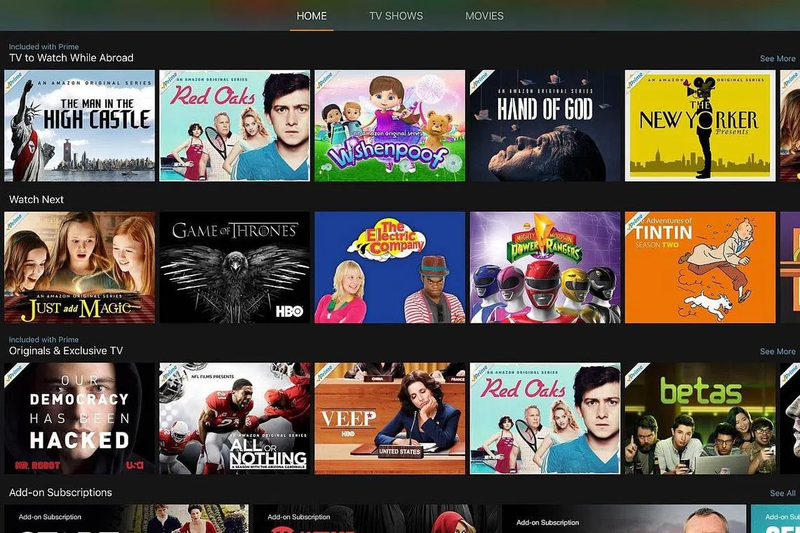BERANEKA FILEM: Skrin ini memaparkan video segera Amazon yang menumpukan kepada filem Amerika dan rancangan televisyen Amazon seperti Golden Globe, Mozart In The Jungle, The Man In The High Castle dan Bosch. - Foto AMAZON INSTANT VIDEO -