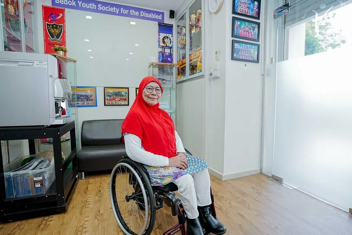 Cik Aisah memerlukan kerusi roda untuk bergerak dan tinggal seorang diri di flat di Dover Road, dengan seorang pembantu rumah yang menguruskan keperluannya.
