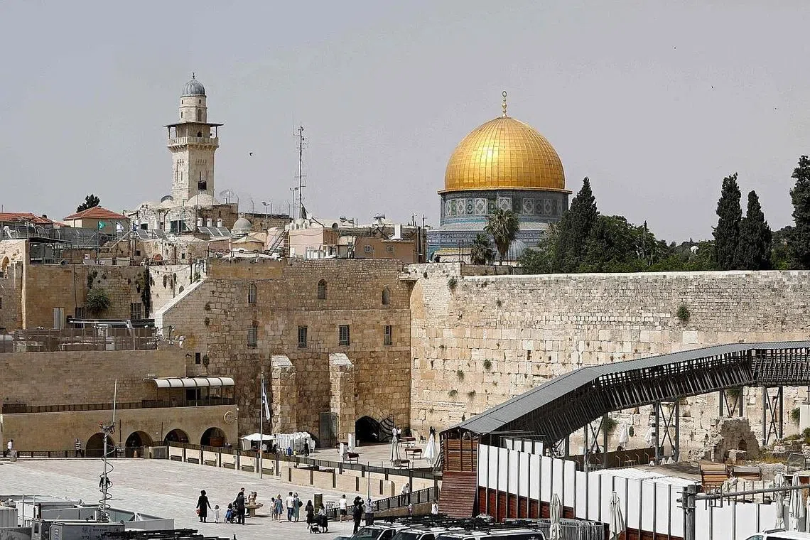 CITRA KEDAMAIAN: Keadaan yang dirakamkan pada 21 Mei lalu menunjukkan Tembok Ratapan di Baitulmakdis (kanan) yang merupakan tapak suci kaum Yahudi dan Kubah As-Sakhrah (kubah emas) dan Masjid Al-Aqsa bersebelahannya yang terlindung, menyaksikan konflik berdarah antara rakyat Palestin dan pemerintah Israel selama 11 hari antara 10 hingga 21 Mei lalu. - Foto AFP -