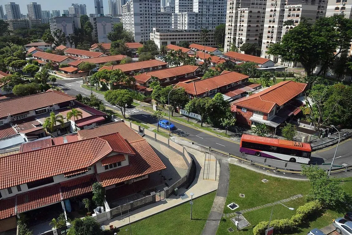 MENJADI TARIKAN: Rumah teres tiga-bilik HDB di Jalan Bahagia dan Jalan Ma'mor. Rumah teres HDB baru-baru ini menjadi daya tarikan ramai pembeli di pasaran hartanah setelah satu penjualan unit serupa di Whampoa mencecah lebih $1.2 juta. - Foto BM oleh ALPHONSUS CHERN -