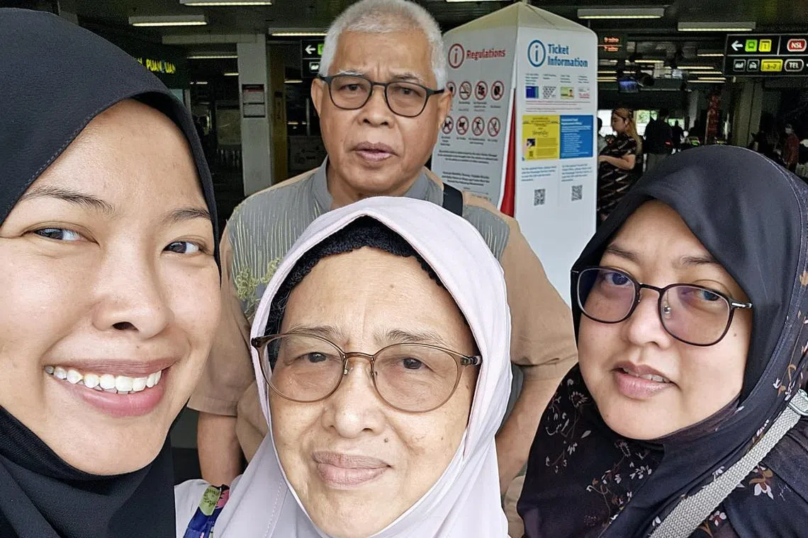 Encik Zainudin Mohamed Yunos (belakang) bersama anggota keluarganya, (dari kiri) anaknya, Cik Nurhuda Zainudin; isterinya, Cik Azizah Kasauk; dan seorang lagi anaknya, Cik Nur Azlin Zainudin, yang banyak memberikan sokongan kepada beliau dalam menghadapi cabaran kehidupan. - Foto ihsan ZAINUDIN MOHAMED YUNOS