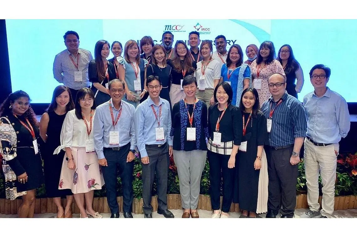 KERJAYA BARU: Encik Adam Haji Hamzah (barisan depan, empat dari kiri) bersama Timbalan Setiausaha (Masyarakat dan Belia), Encik Philip Ong (barisan depan, paling kanan), dan pasukan Kementerian Kebudayaan, Masyarakat dan Belia di acara ulang tahun ke-20 Bulatan Keyakinan Antara Kaum dan Agama. - Foto-foto MCCY, MISI PBB DI HABSYAH DAN ERITREA -