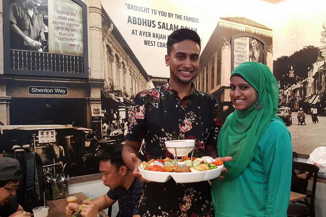 NIAGA WARISAN: Pasangan Encik Abdhus Salam Akber Ali, yang memiliki ijazah sarjana muda kejuruteraan elektrik dan elektronik, dan isterinya, Cik Nadira Ahamed Basir, membuka restoran Ministry of Rojak sebagai penyambung warisan ayahnya. -