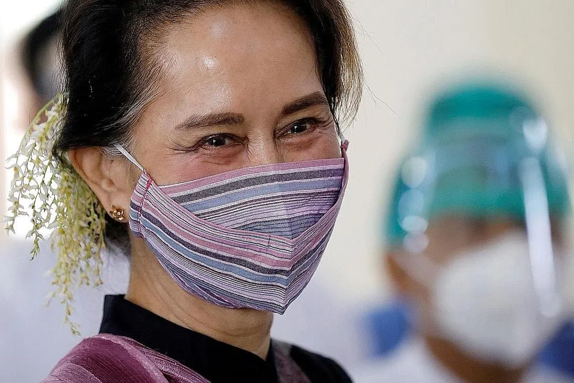 HADAPI RISIKO DIPENJARA: Myanmar berdepan kekecohan sejak Februari lalu, apabila kudeta tentera menggulingkan Cik Aung San Suu Kyi (gambar atas). Sejauh ini dilaporkan lebih 880 orang maut dalam tindakan keras junta susulan penentangan politik. - Foto REUTERS -