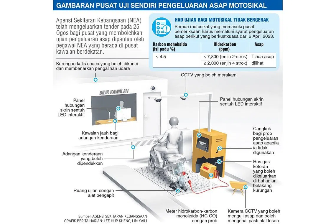NEA uji kemudahan periksa asap motosikal sendiri di Pusat Pemeriksaan Woodlands