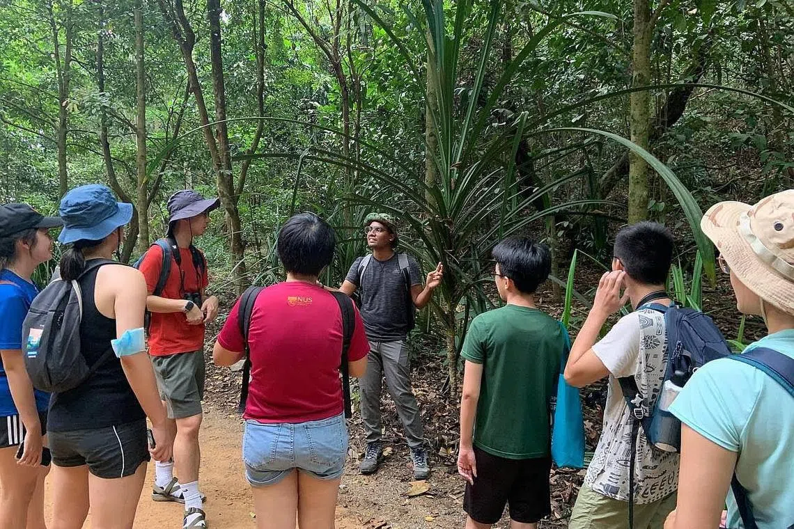 INGIN TINGKAT KESEDARAN: Encik Nasry (berbaju hitam) ingin lebih ramai warga Singapura sedar akan kewujudan biodiversiti di Singapura dan bertindak bagi memelihara alam sekitar melalui program 'green walk' yang dianjurkan SYVB. - Foto ihsan ENCIK MUHAMMAD NASRY ABDUL NASIR -