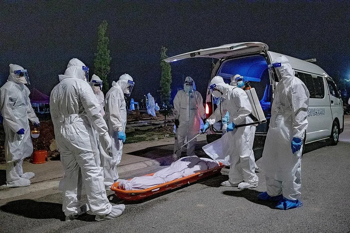 PANDEMIK COVID-19: Peningkatan kes jangkitan dan kematian akibat Covid-19 telah menjejas prestasi ekonomi Malaysia hingga mengakibatkan syarikat penarafan kredit antarabangsa, Fitch Solutions membuat semakan semula unjuran Keluaran Dalam Negara Kasar (KDNK) Malaysia. Gambar menunjukkan sekumpulan petugas perubatan pada 16 Julai lalu melakukan sanitasi ke atas jenazah pesakit koronavirus di Kuala Lumpur dan kemudian membakar kesemua alat pelindung diri yang digunakan mereka demi mencegah penularan virus. - Foto BH oleh YUSOF ASYRAF -