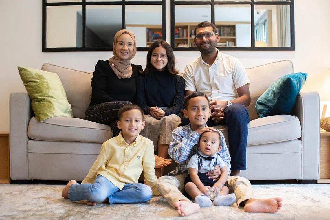 ANTARA SEGELINTIR PAKAR GERIATRIK MELAYU: Dr Farhan (kiri) di samping suami, Encik Imran Shah Rahman Shah (kanan), dan empat anaknya - (barisan belakang, tengah) Nur Hana, (barisan depan, dari kiri) Syed Jibrail, Syed Mikael dan Syed Eesa. - Foto BM oleh HARITH MUSTAFFA -