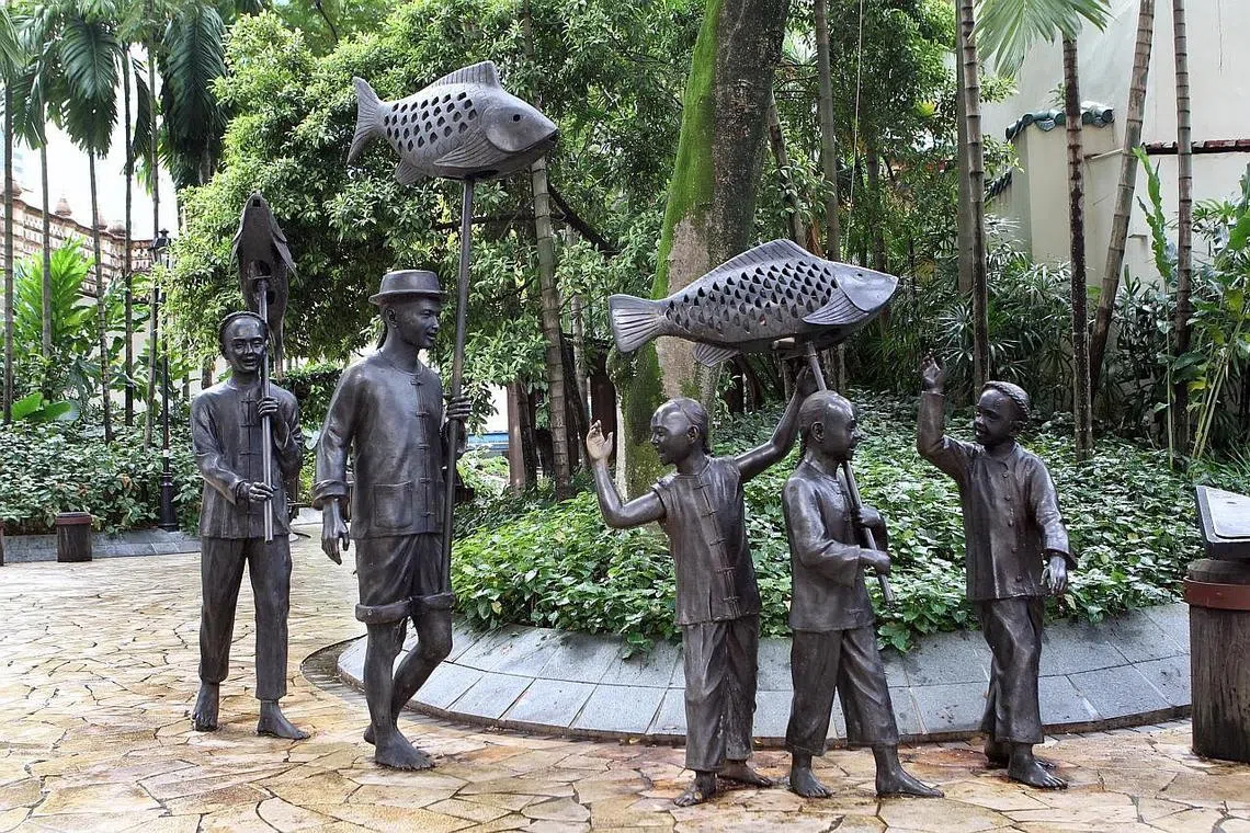 TELOK Ayer Green adalah taman kecil yang mempunyai beberapa patung dan terletak di antara dua monumen bersejarah, Pusat Warisan Muslim India Nagore Dargah dan Kuil Thian Hock Keng.