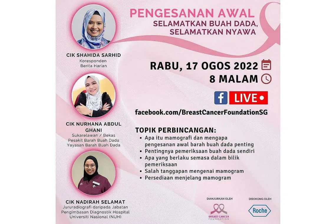 SAKSI SESI BUAL KHAS: Orang ramai kini boleh menyaksikan sesi perkongsian hasil kerjasama Berita Harian dan Yayasan Barah Buah Dada (BCF) yang disiarkan di Facebook BH dan BCF. - Foto BCF -