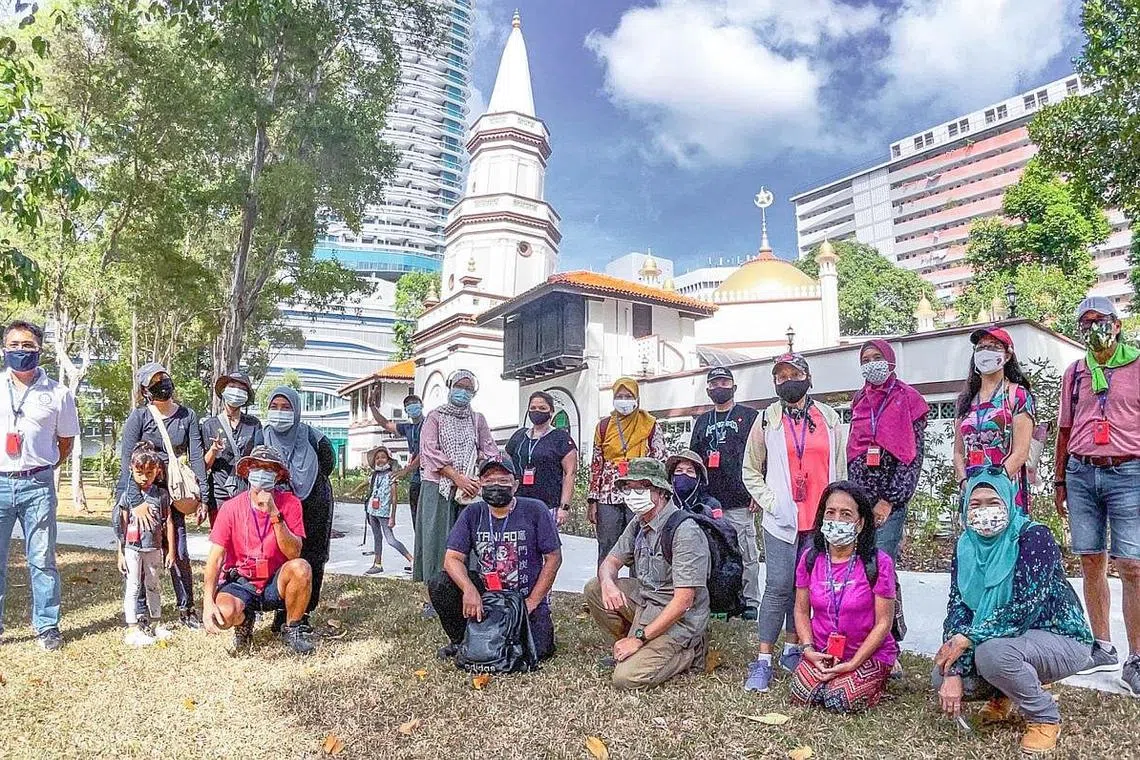 MASJID BERSEJARAH: Masjid Hajjah Fatimah sentiasa menjadi salah satu lokasi persinggahan setiap kali saya (kiri) mengadakan ekspedisi 'Jejak Warisan' di sekitar Kampong Glam. Ia dibina menggunakan gabungan seni bina Islam dan Eropah dan siap pada 1846 dan dipercayai masjid pertama di sini yang dinamakan sempena nama seorang wanita. - Foto SARAFIAN SALLEH -
