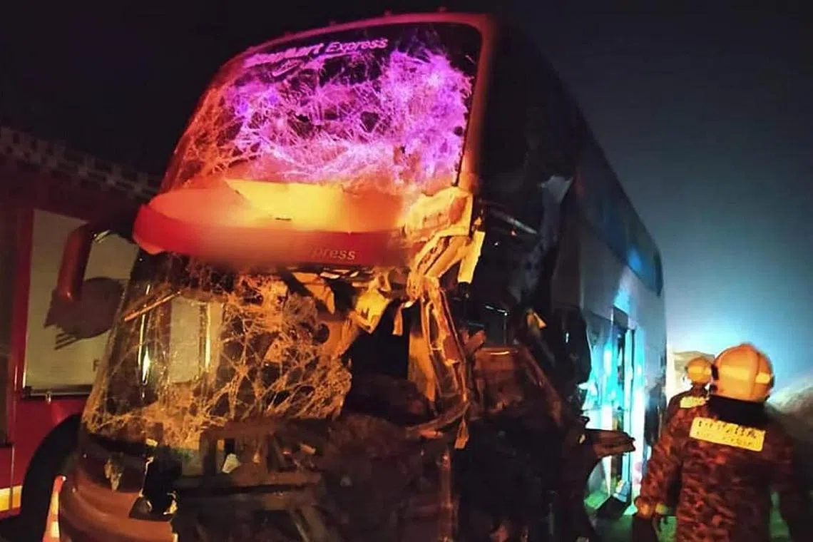 Dalam kejadian sekitar 4 pagi itu, pemandu bas yang berusia 42 tahun dikatakan telah hilang kawalan sebelum melanggar treler berkenaan di lorong paling kiri.