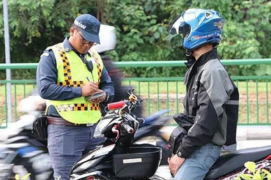 DIKENAKAN TINDAKAN: Sebanyak 163 penunggang motosikal yang didaftar di negara asing telah ditahan ekoran pelepasan asap berlebihan dan bunyi bising. - Foto NEA -