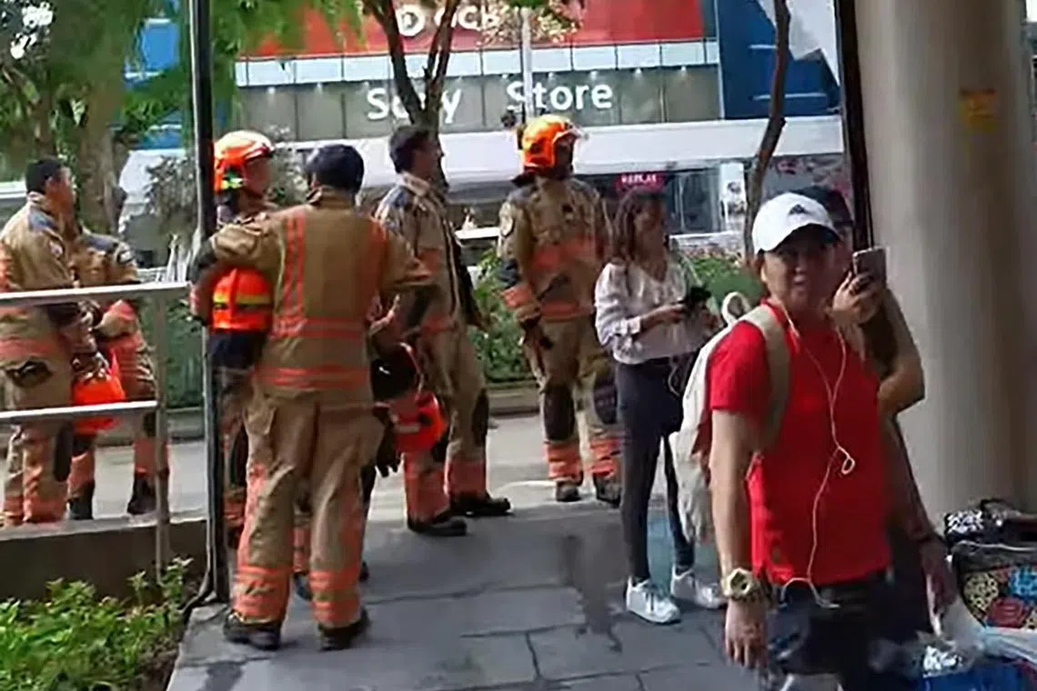 Dalam video di Facebook, kira-kira 10 pegawai SCDF boleh dilihat di sebelah sebuah ambulans, dengan orang ramai berkumpul di hadapan pintu masuk ke Lucky Plaza, yang menempatkan puluhan kedai dan kedai makan, yang banyak dilanggani golongan ekspatriat Filipina.