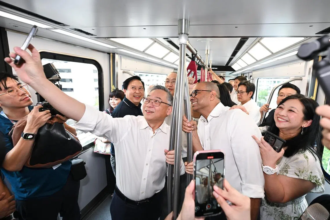 AP SMC Jalan Kayu dan Setiausaha Agung Kongres Kesatuan Sekerja Kebangsaan (NTUC), Encik Ng Chee Meng turut hadir. Bersama tetamu lain, mereka dibawa meninjau LRT yang baru semasa ia beroperasi.