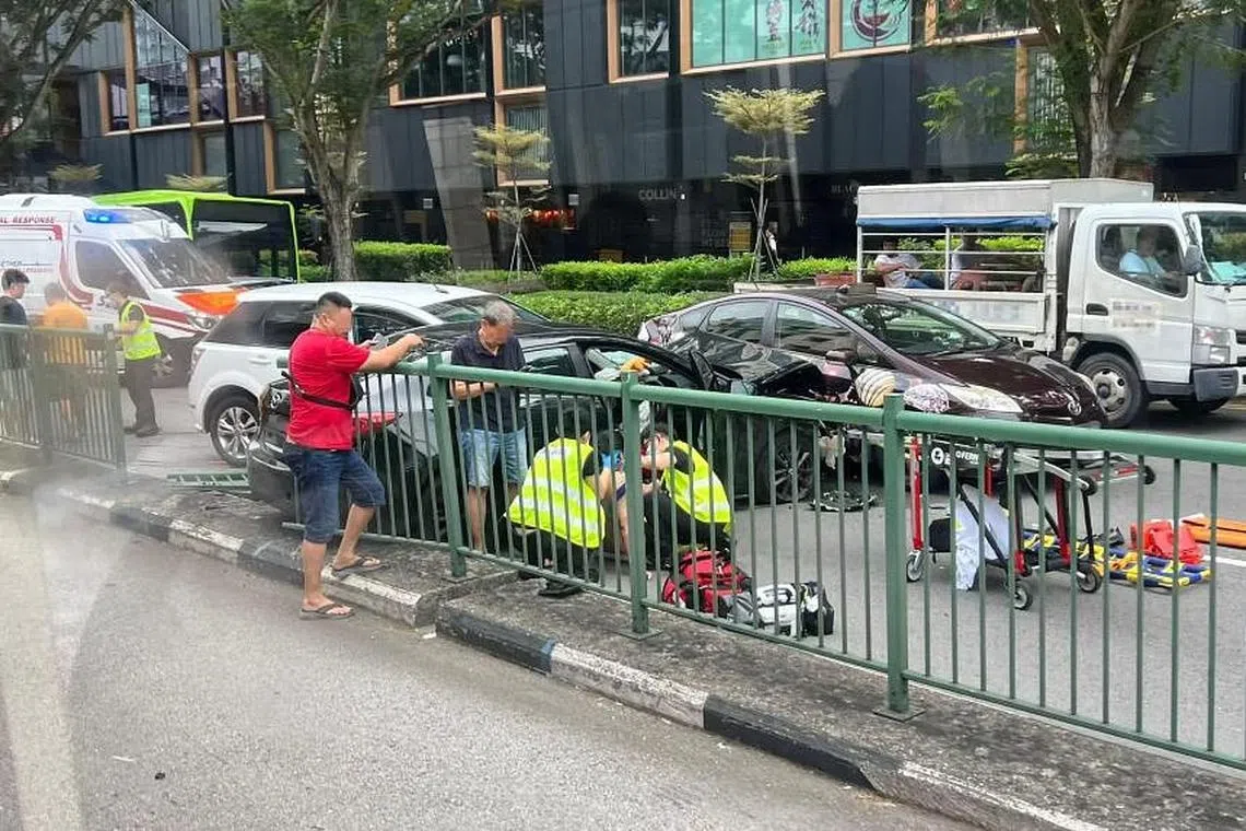 Seorang pemandu teksi, 54 tahun, dan seorang pemandu kereta, 35 tahun, yang dalam keadaan sedar, dibawa ke Hospital Tan Tock Seng.
