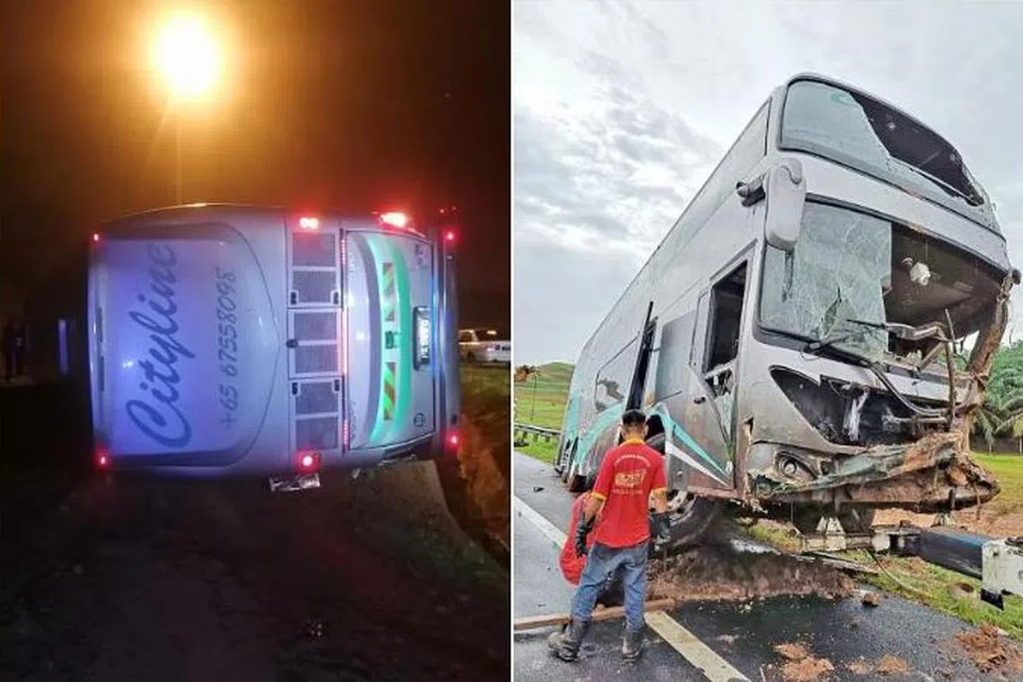 3 cedera selepas bas persiaran dari S’pura terbabas di Johor