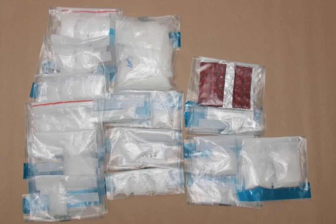 Rampasan itu termasuk sekitar 1,050 gram ‘Ice’, 100 tablet Erimin-5, 9 gram ‘Ecstasy’ – yang berpotensi memenuhi ketagihan 600 penyalah guna dadah selama seminggu – dan pelbagai peralatan dadah, kata CNB dalam satu kenyataan pada 15 Ogos.