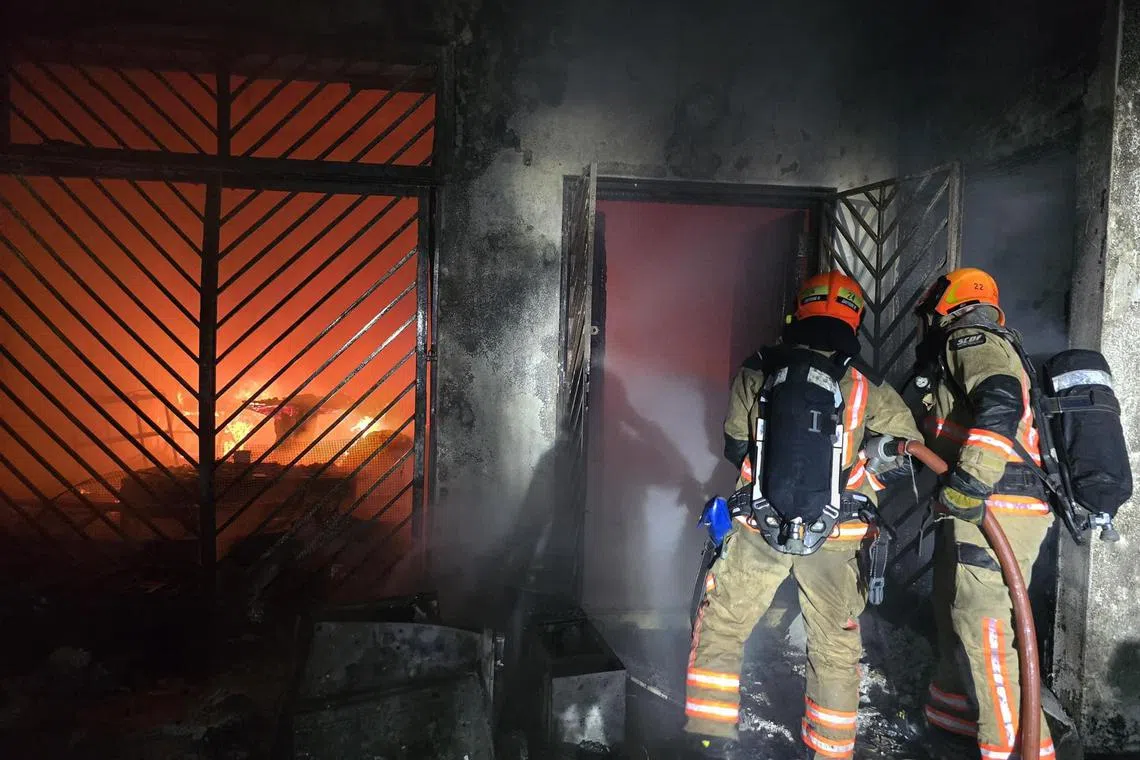 Anggota bomba terpaksa merempuh masuk ke dalam rumah tersebut dan menggunakan dua pancutan air untuk mengawal kebakaran itu, tambah SCDF.