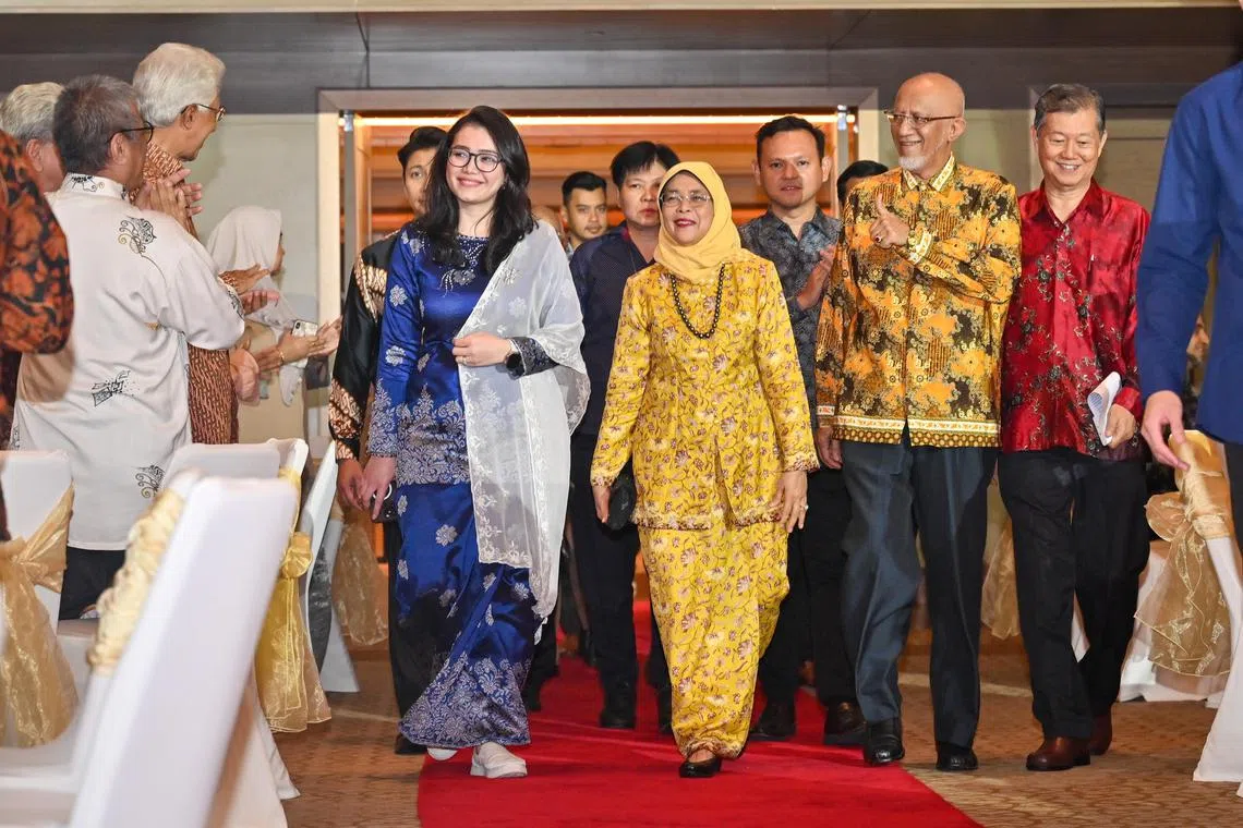 Majlis yang diadakan di Ritz Carlton pada Sabtu adalah bagi mengiktiraf kepimpinan dan khidmat Puan Halimah yang cemerlang sebagai Presiden kelapan Singapura.