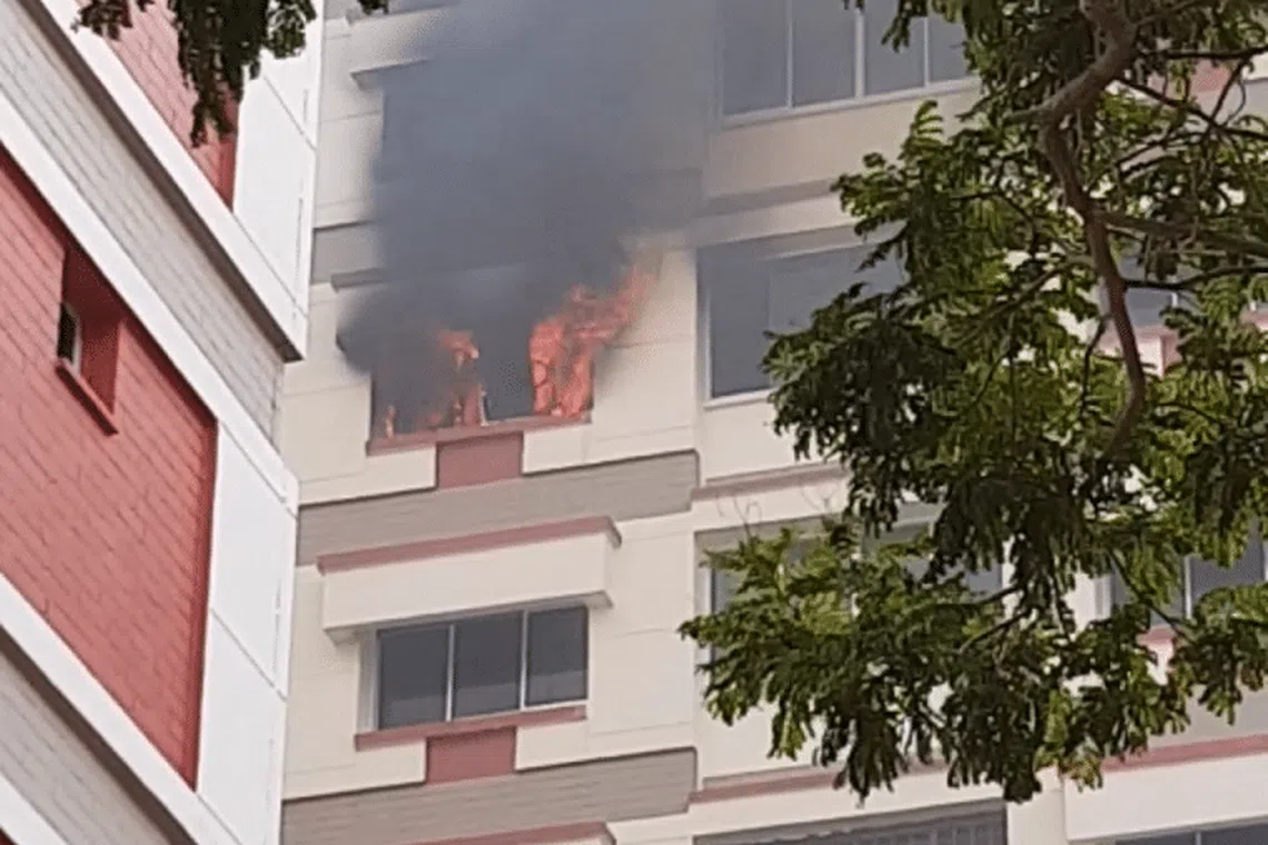 SCDF berkata ia respons pada kebakaran itu, yang menjilat barang-barang dalam sebuah bilik tidur, di Block 307, Tampines Street 32 pada kira-kira 9.10 pagi.