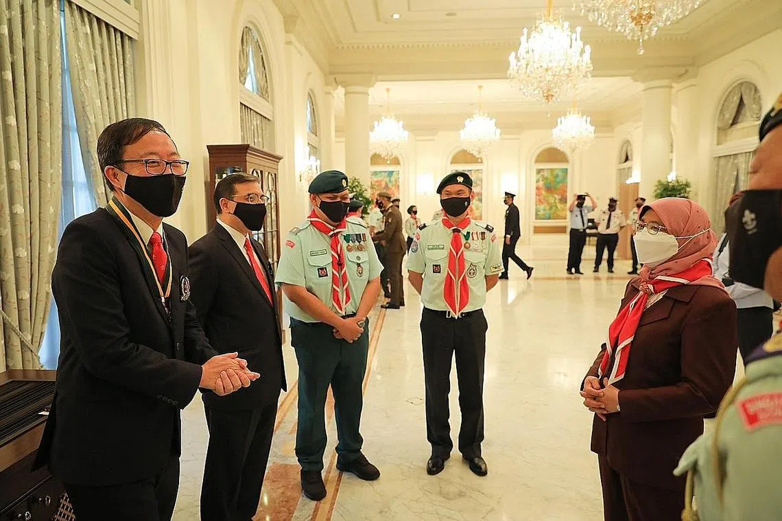 SERAMAI 48 anggota pengakap Singapura dianugerahkan Anugerah Perkhidmatan Cemerlang Persatuan Pengakap Singapura (SSA) oleh Presiden Halimah Yacob semalam.