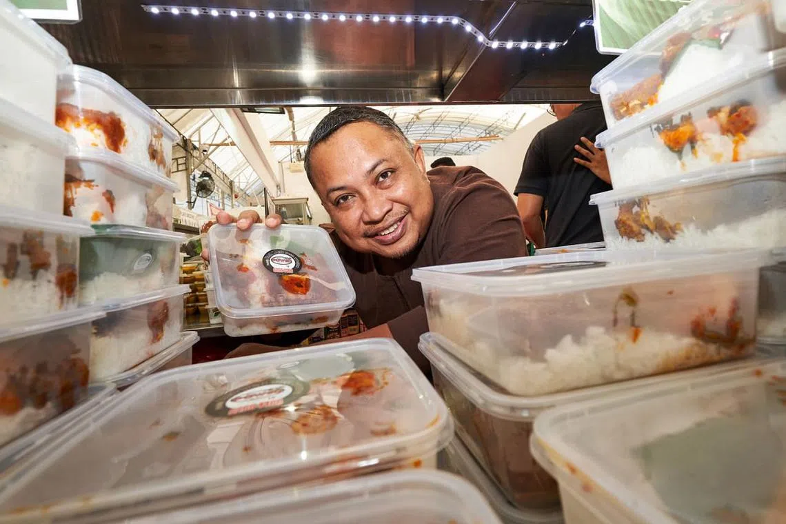 'NASI LEMAK POWER': Encik Badrol Hisam dengan bungkusan nasi lemak di gerainya yang terletak di Bazar Raya Utara. - Foto BH oleh ROSLEE ABDUL RAZAK -