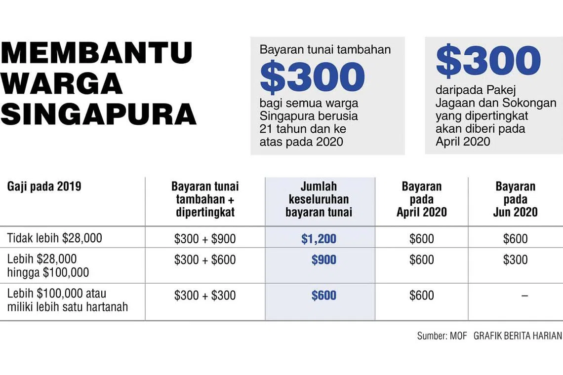 Semasa Belanjawan 2020 Februari lalu, pemerintah mengumumkan bayaran antara $100 dengan $300 bagi setiap warga Singapura berusia 21 tahun dan ke atas, sebagai sebahagian Pakej Jagaan dan Sokongan.