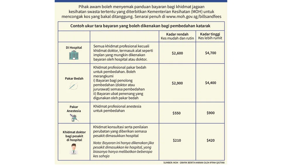 “Selepas pembedahan, jika bil keseluruhan melebihi daripada jumlah yang diberitahu semasa kaunseling, pesakit boleh memohon untuk bil secara terperinci, dan mendapatkan penjelasan doktor dan hospital, untuk memahami komponen mana yang telah menyebabkan bil lebih tinggi daripada yang dijangkakan,” kata MOH.