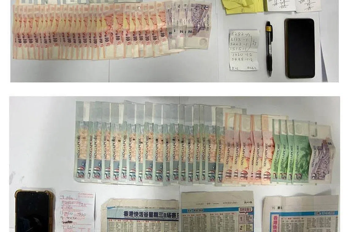 Kenyataan itu berkata wang tunai bernilai lebih $2,000 telefon bimbit dan barangan berkaitan berjudi telah dirampas.