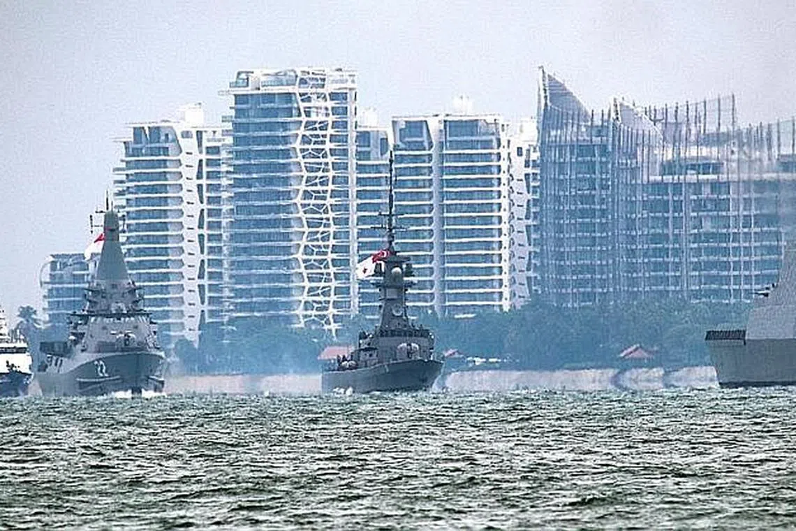 PAMER KEKUATAN: Antara kapal yang menyertai acara layar lalu Perbarisan Hari Kebangsaan (NDP) pada 9 Ogos kelak. - Foto ZAOBAO -