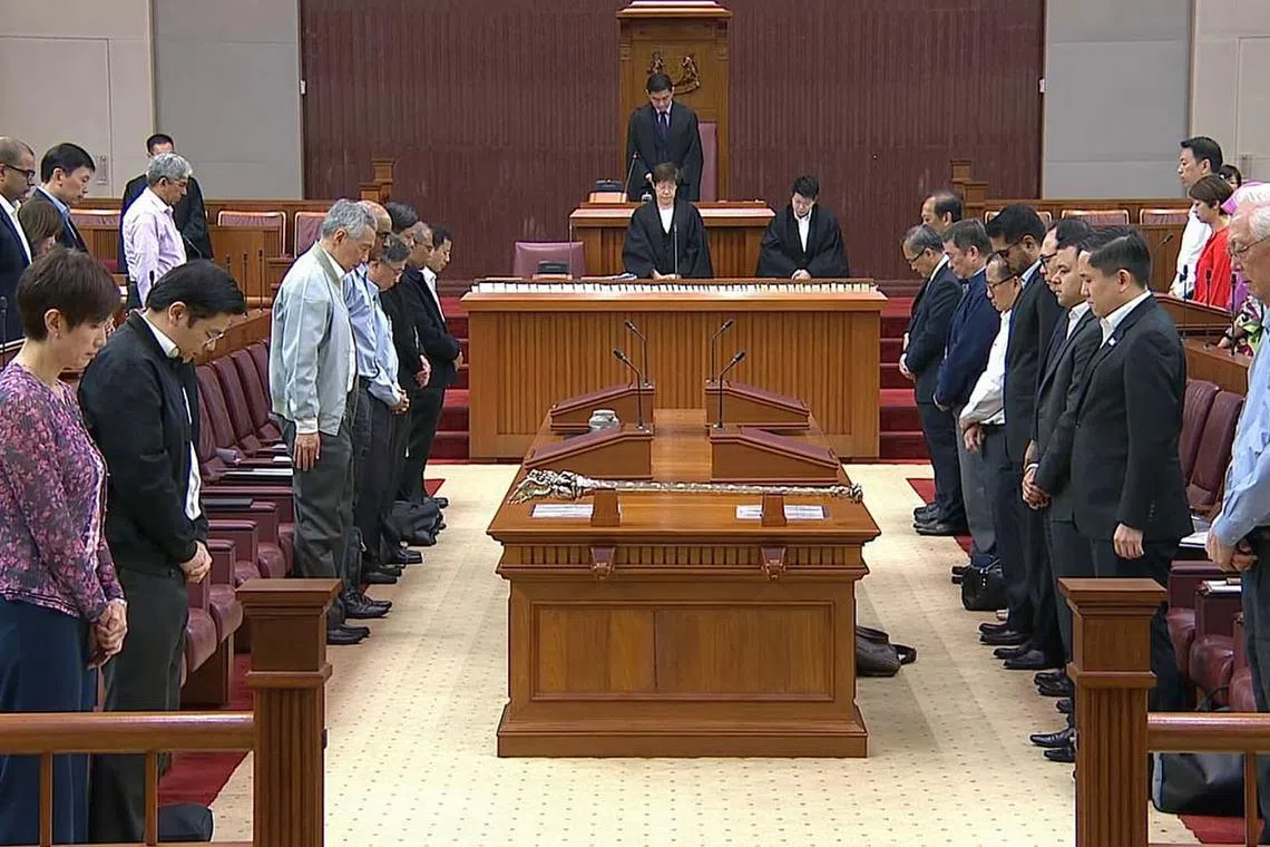 ANGGOTA Parlimen bertafakur selama seminit bagi memperingati mangsa yang terkorban akibat serangan pengganas di dua masjid di Christchurch, New Zealand, sebelum sesi Parlimen bermula kelmarin.