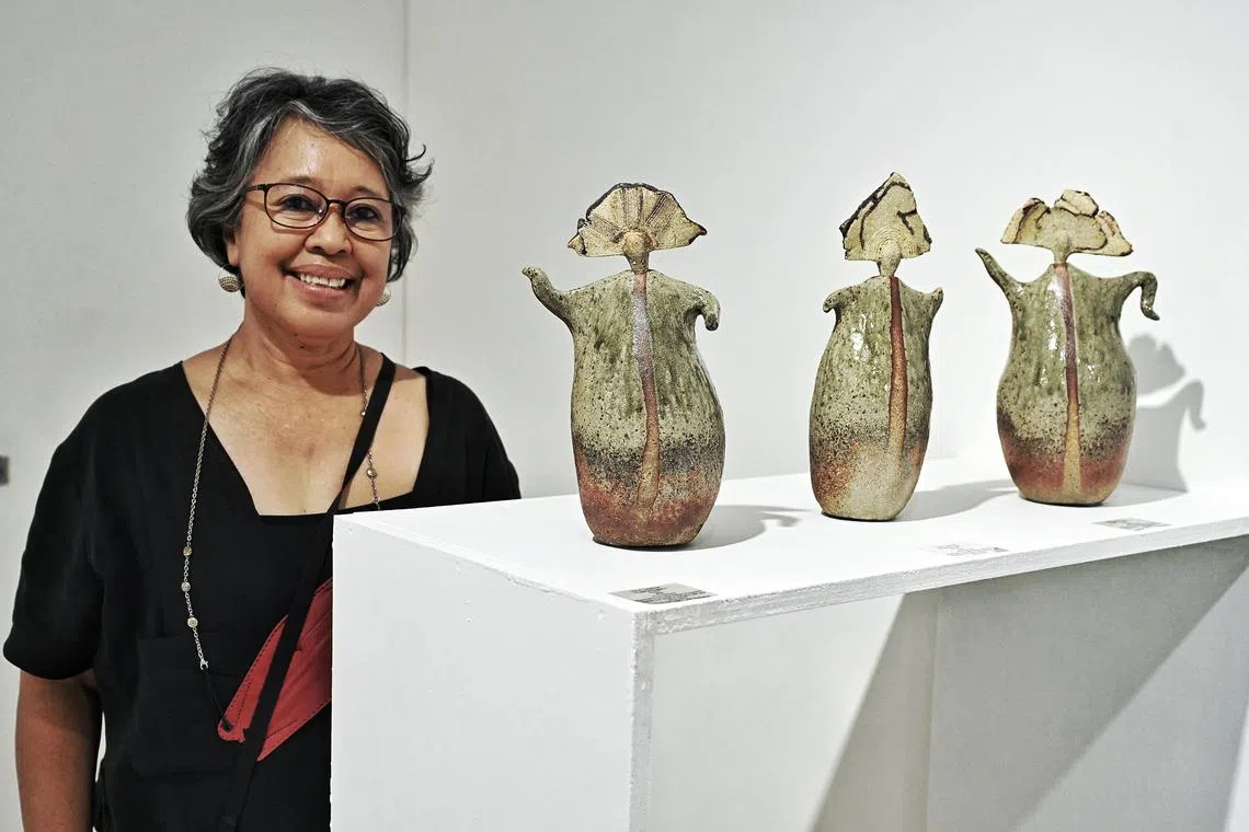Dr Suriani Suratman bersama arca seramiknya ‘Lenggang lenggok’. - Foto BM oleh KHALID BABA