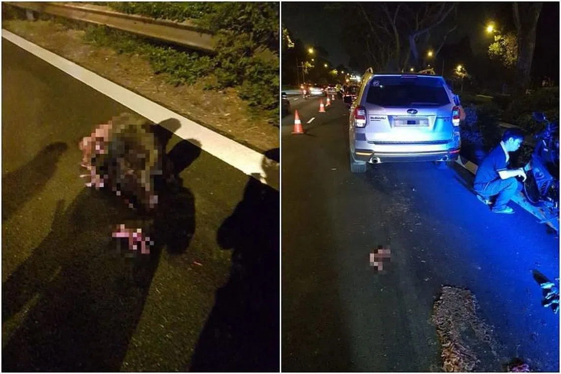Menurut akhbar The Straits Times, babi hutan itu dilanggar dua kereta di lorong paling kanan ekspreswe itu.