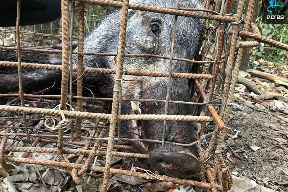 DITEMUI MATI: Doktor haiwan Persatuan Penyelidikan dan Pendidikan Haiwan (Acres) mendapati babi hutan itu mati akibat stres dalam ruang yang sempit. - Foto FACEBOOK/ ACRES -