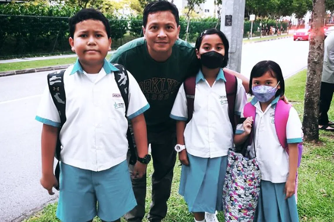 Seorang lagi bapa, Encik Mohamed Rohaimi, pula berkongsi gambarnya menghantar tiga anak berbeza umur ke sekolah rendah.