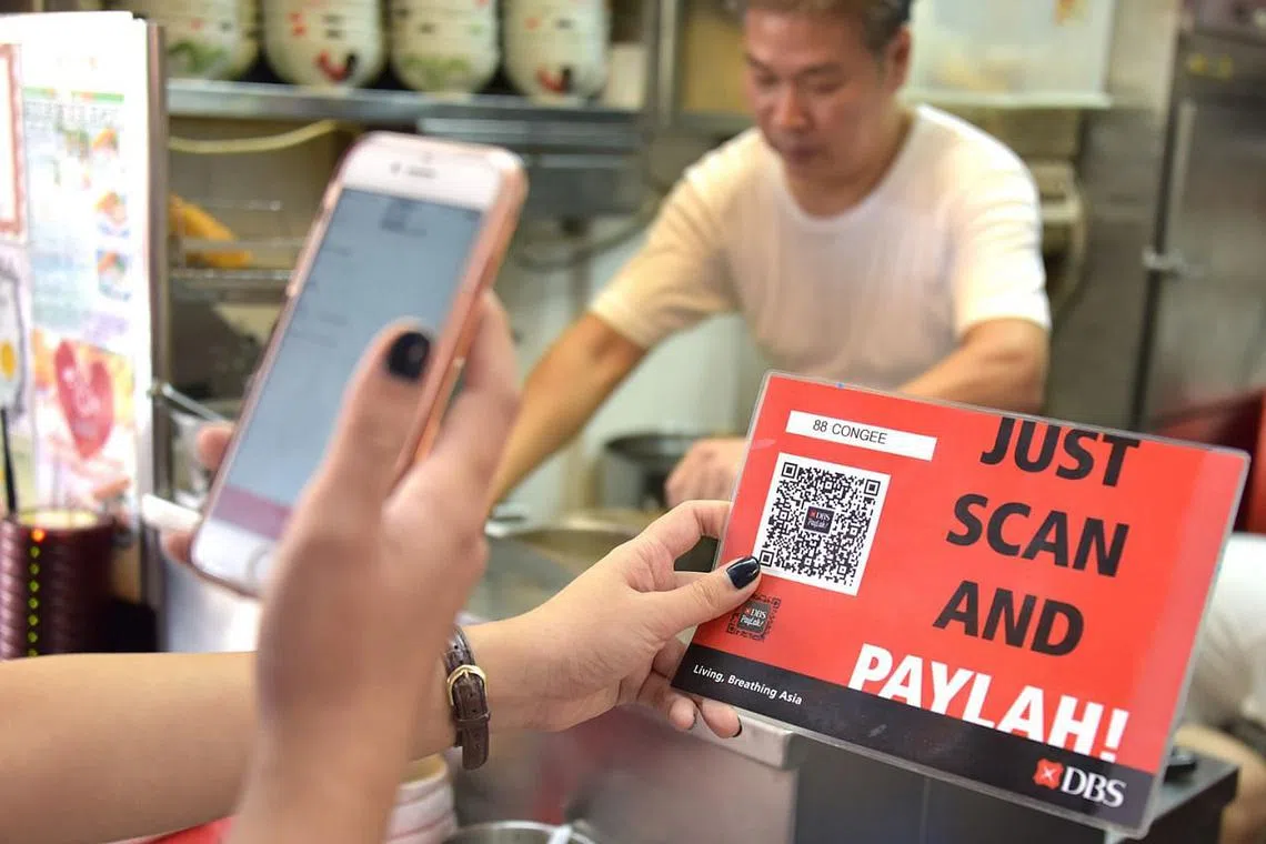 Dengan label SGQR unik di kedai masing-masing, penjaja dapat menerima bayaran menerusi 19 skim pembayaran berbeza termasuk DBS PayLah!, GrabPay dan Singtel Dash.