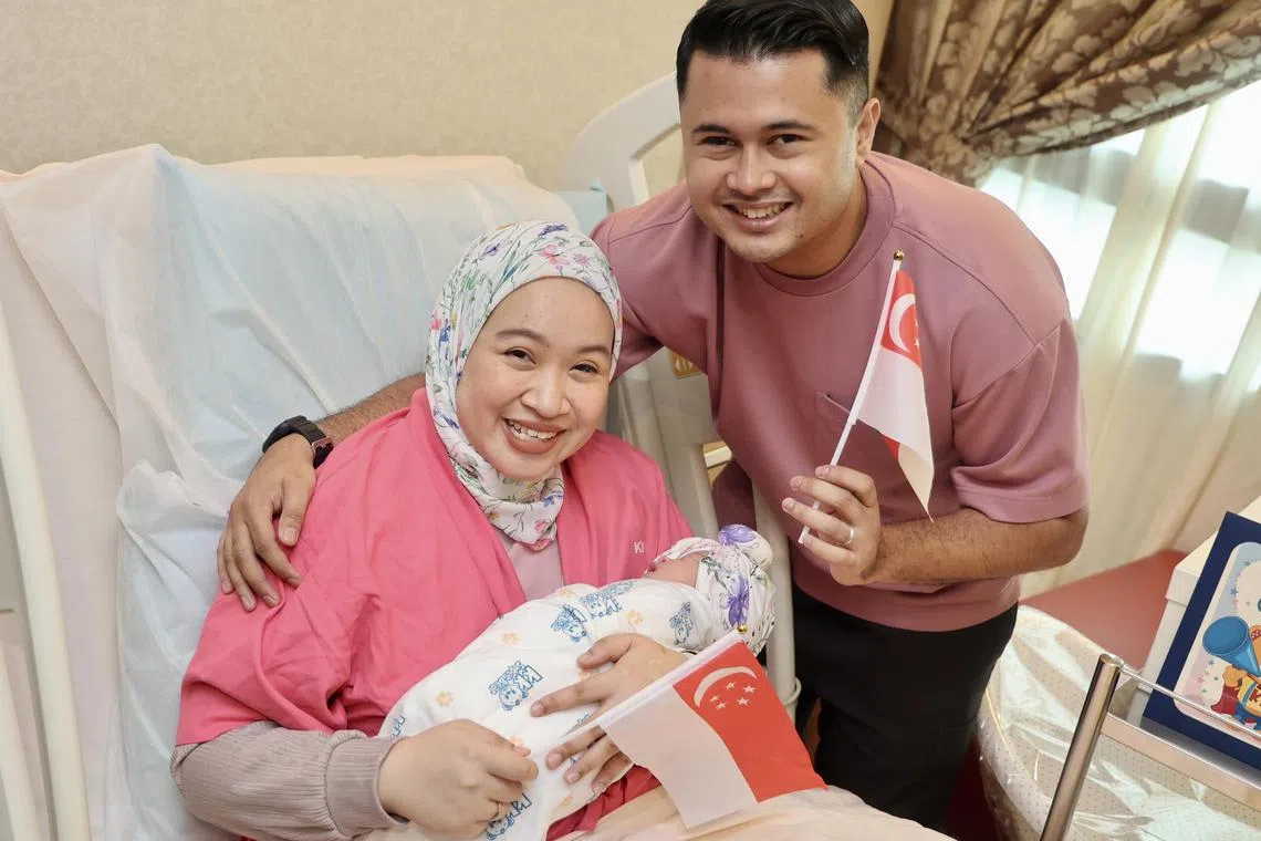 Cik Nur Zuhairah, 25 tahun, selamat melahirkan anak perempuan seberat 3.18 kilogram di Hospital Wanita dan Kanak-kanak KK (KKH), menjadikan anak pasangan itu antara bayi pertama sempena Hari Kebangsaan Singapura ke-59.
