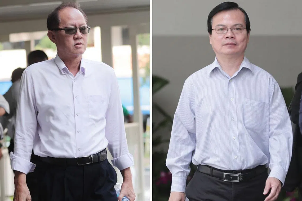 MAKAN SUAP: Wong Chee Meng (kanan), bekas pengurus besar Majlis Bandaran Ang Mo Kio, menggunakan kedudukannya untuk mempengaruhi hasil keputusan tender seperti mengarahkan kakitangan mengubah markah tender agar berpihak kepada Chia Sin Lan, pengarah dua syarikat binaan. - Foto-foto BH oleh KELVIN CHNG -