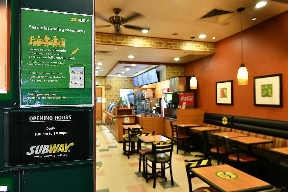 Ini termasuk tempat F&B yang mempunyai kedai kopi, tempat makan atau lesen kantin yang diberikan oleh Agensi Makanan Singapura (SFA), jelas MOH.